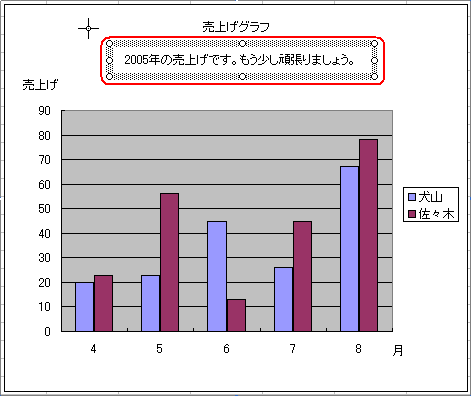 グラフを描いたあと、下図のようにグラフ内へ簡単な説明用の文字を入れたいといったことはありませんか?