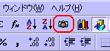他の場所へ貼り付けたい部分を範囲選択し、カメラのアイコンをクリックします。マウスポインタの形が「+」になるので、設置したいワークシート上でクリックします。下図のように、選択部分が画像として貼付られます。画像は貼付後自由にドラックで動かすことができます。なお、この画像のデータは、リンク貼り付けと同じく元のデータを修正すると、画像の方にも反映されます。
