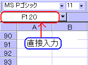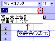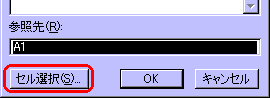 移動先(G)のボックスには、名前の定義で定義されているセルの名前、過去にジャンプしたセル参照などが表示されます。 |