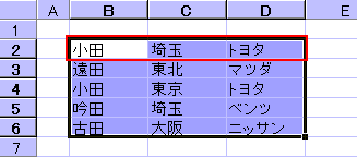 この例では、アクティブセルB2と同じ行にあるC2とD2がアクティブ列ということになります。すなわち、B2、