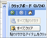 2002以降では、編集 → Officeクリップボードをクリックします。そうすると作業ウィンドウのところへ、クリップボードが表示されます。(下図参照)
