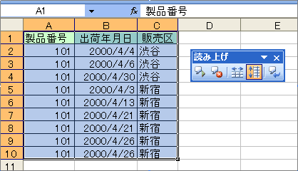 Excel2002からワークシートのデータを読み上げてくれる機能が付きました。一人でシートを校正するような場合には、便利です。ただし、音声のイントネーションや音質にやや難があり、聞き取りには慣れが必要です。