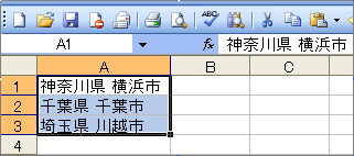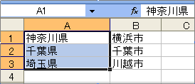 ウィザードは「3/3」までありますが、詳細な設定をする必要がなければ、このまま完了ボタンをクリックします。下図のように、市名がB1〜B3へ転記されます。