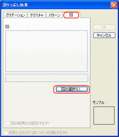 これで、塗りつぶし効果のダイアログボックスが表示されます。(下左側図参照)
