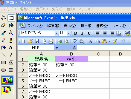 一時保存されたキャプチャー画像は呼び出さないと使えません。そのまま、エクセルやワードに表示させるには、「貼り付け」ボタンを押します。BMP画像として表示されます。この画像を元に、トリミングや図形描画機能を使い文字を入れたり加工可能です。そして、再度キャプチャーすることも可能です。
