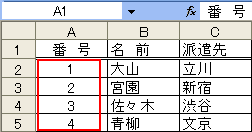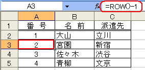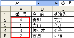 この連続番号は、行番号を取得して振る番号ですので、名簿の名前を基に並べ替えても番号は変わることがありません。