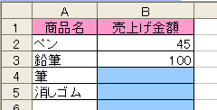 これで、セルの背景に色が付き、左図のようにデータを入力すると背景の色は消えるようになります。 |