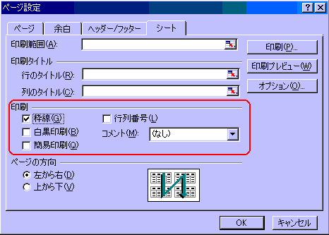 (ページ設定ダイアログボックスの設定は、入門13参照。)