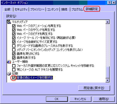 ⇒ 「インタネットオプション」ダイアログボックスを表示させます。 |