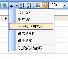 左図のように、合計、平均、データの個数、最大値、最小値のコマンドが表示されます。