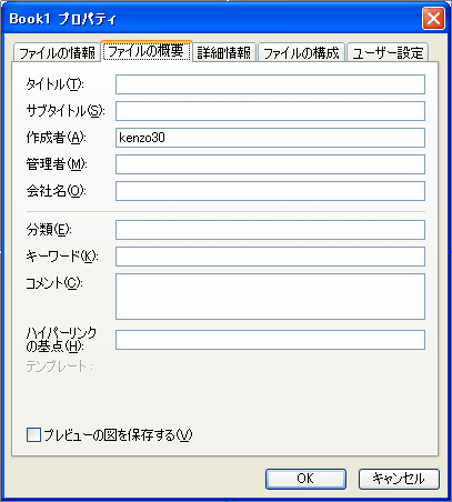 あまり使われていないようですが、一度ダイアログボックスを開いて確認してみてください。 ※ワードでも同じようにファイルのプロパティがあります。 先頭へ戻る