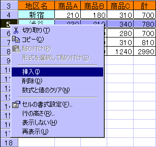 ておけば、行または列を挿入することができます。