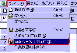 保存は、左図のように ファイル→「Webページとして保存」を選択します。 |