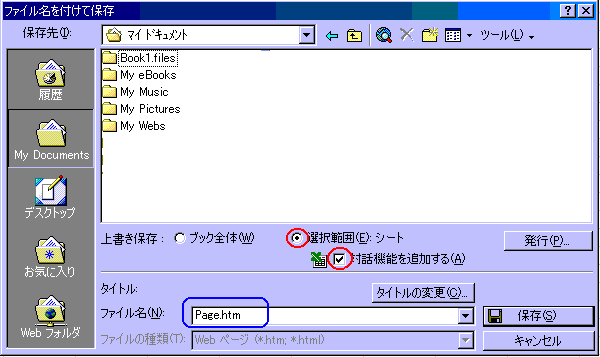 ファイル名は、そのまま「Page.htm」でOK。保存先は、自由です。(マイドキュメントなど)
