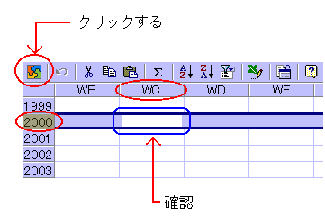 (5)次に、「Tabキー」を押しつづけ、下図のようにアクティブセルを「WC」まで移動させます。