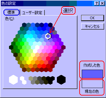 (2)「色の設定」ダイアログボックスが表示されるので、色を作成します。