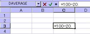 関数の場合は、先頭への入力はできませんが、「+100SUM(H1:H4)」のように途中からであれば入力可能です。(結果は=100+SUM(H1:H4)と入力される)