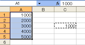 別セルB1セルへ「=A1*1000」とし、B5までコピーする手はありますが、そのままA1〜A5セルへそのデータを表示するのは難しく思えてしまいます。