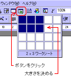 このシート外は、通常のワードとして使用できます。シート外をクリックするとツールバーは、ワードに戻ります。なお、ワークシートの大きさは、挿入されたシートの右や下にカーソルを当てて、自由に変えることができます。操作の詳細は、実際に操作して確かめてください。