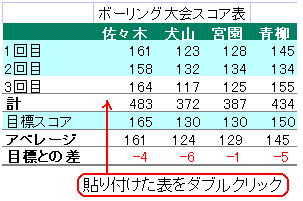 データの修正などの編集を行うには、貼り付けられた表をダブルクリックします。 |