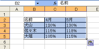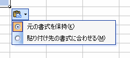 2002以降では、貼り付け後、「貼り付けオプションボタン」が表示されます。