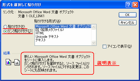 実際に、いろいろな貼り付け形式で試して覚えてください。図として貼り付ける場合には、図(オートシェイプ)の取り扱いに慣れておく必要があります。