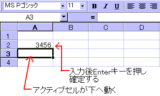 エクセル(Excel)の数字入力と、文字入力は、以下のように行います。