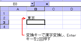※エクセル(Excel)の標準書式の配置では、数字は右詰、文字は左詰で確定されますが、別途に書式設定をすれば配置を変更する事ができます。(書式設定については、入門9参照)