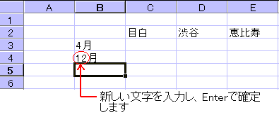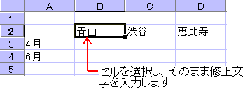 入力したデータの修正は、以下のように行います。