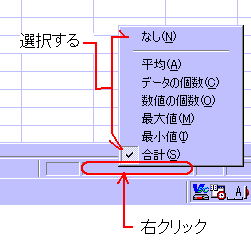 エクセル(Excel)には、選択したセル範囲のデータの集計値を簡単にステータスバーに表示する機能があります。この機能の事をオートカルクと言います。作成した表内の数値データのある範囲を選択すると、その合計や個数を表示してくれます。