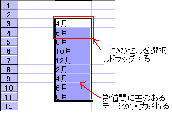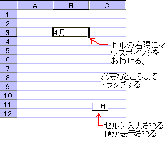 なお、この機能は、列方向のみ有効であり、行方向では無効です。また、数値、日付、時刻だけを入力する場合も機能しません。