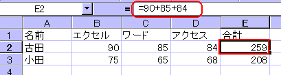 ◆数式の直接入力数式の直接入力とは、下図のようにセルの値を式に直接入力する方法です。