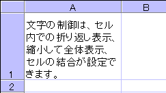 文字の制御の詳細は、下記のとおり。 ◆折り返して全体を表示する