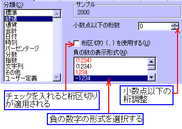 下記へ「数値」、「通貨」、「その他」の例を解説します。 ◆数 値