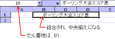 セル番地は、行方向では左端、列方向では上端のセル番地が適用されます。 ※結合したセルを解除するには、結合セルを選択し、セルの書式設定ダイアログボックスの表示形式パネル内の「文字の制御」の下端にある<セルを結合する(M)>のチェックをはずします。 |