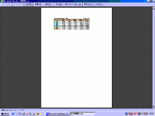 ツールバー内の「印刷プレビューボタン」をクリックすると印刷プレビュー画面に切り替わります。(下図参照)