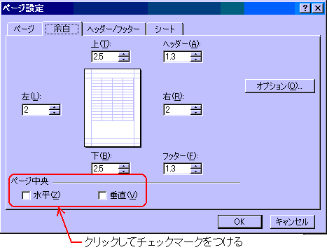 ページ中央の水平(Z)又は垂直(V)にチェックマークをつけると、印刷対象を水平方向又は垂直方向の中央に配置できます。