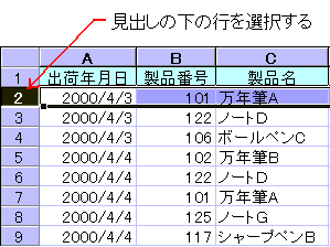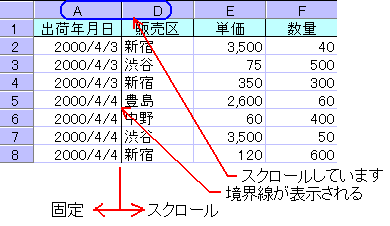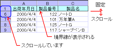 ■フィールドの固定フィールドの固定も、列見出しの固定と同じ手順で行う事ができます。