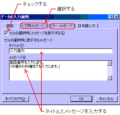 また、入力時にメッセージを表示させる設定もできます。(下段参照)