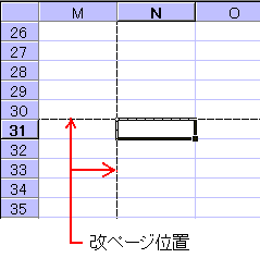 ■改ページプレビューによる改ページ位置の変更Excelでは、ページ番号やページの区切りをワークシート上に表示させて、ページの区切り(改ページ位置)を変更する事ができます。この操作を行うには、改ページプレビューを利用します。