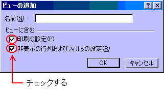 次に、名前(N)ボックスに適当な名前を入力し、OKボタンをクリックするか、Enterキーを押すと表示している印刷状態がビューとして保存されます。
