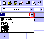 この機能で、セルやセル範囲に付けた名前の位置の確認ができます。ただし、この名前ボックスには数式や定数に付けた名前は表示されません。あくまで、セルやセル範囲に付けた名前だけです。