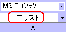 左図のように、ボックス内をクリックして反転表示になった状態で「年リスト」と入力します。 |