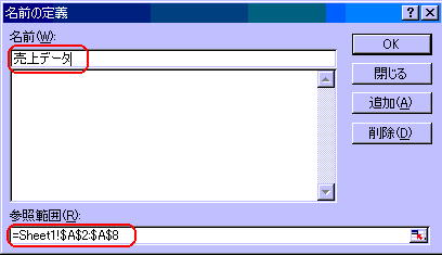 下図が名前の定義ダイアログボックスです。