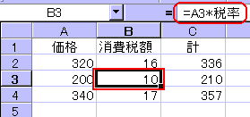 こうしておけば、左図のように、「=A3*税率」で数式を作ることができます。