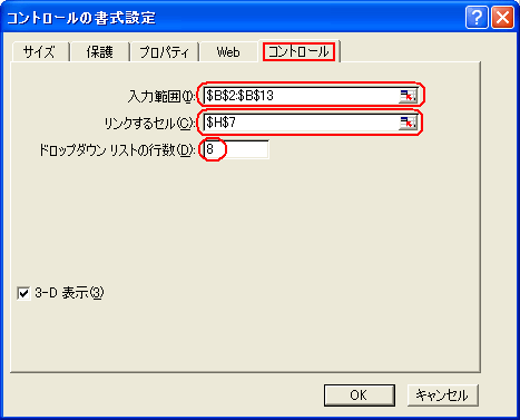 堦偮栚偺僐儞僩儘乕儖僞僽傪奐偒擖椡斖埻乮I乯傊塩嬈扴摉幰柤偺斖埻乽$A$3:$A$7乿傪巜掕偟丄儕儞僋偡傞僙儖乮C乯傊乽$B$12乿偲巜掕偟傑偡丅