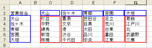 INDIRECT娭悢偼丄暥帤楍偐傜偦偺嶲徠愭傪曉偡娭悢側偺偱乽B13乿偺扴摉幰柤偐傜丄偁傜偐偠傔塩嬈扴摉幰柤偱掕媊偟偰偄傞扴摉嬫堟傪敾暿偱偒傞偲偄偆傢偗偱偡丅乮INDIRECT娭悢 仺 拞媺23 嶲徠乯