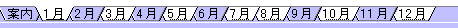 1月〜12月の各シートごとに、A2とB2セルの結合(A2)へ下図のように、順次1〜12の数字を入れます。