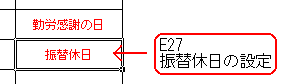 B列(B18〜B24)が「月」の場合、E列摘要欄に「敬老の日」と表示されるはずです。 |