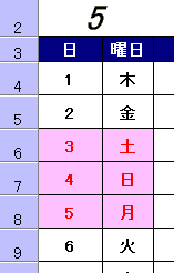 振替休日かどうか、直接E28セルの表示から判定させています。